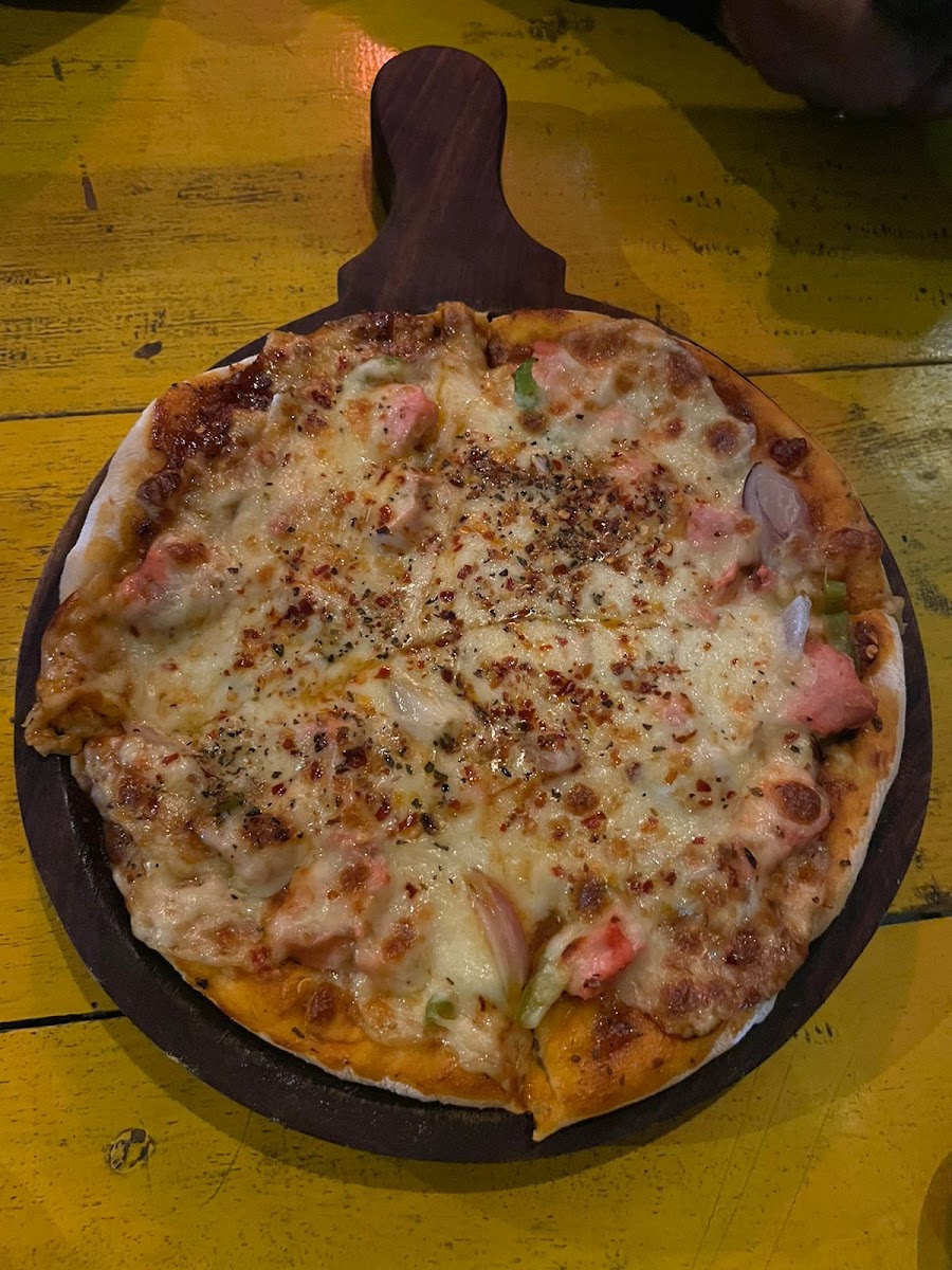 Locals often gravitate toward the chicken pizza and brownie shake, pairing a savory treat with a creamy, indulgent drink to recharge. Coffee here isn’t just a beverage—it’s a reason to slow down. Options like handmade coffee, masala milk tea, and cold coffee cover different moods and seasons. The vibe is unhurried, with some seating near the window offering a glimpse of everyday street life, which adds to the grounded, small-town charm.